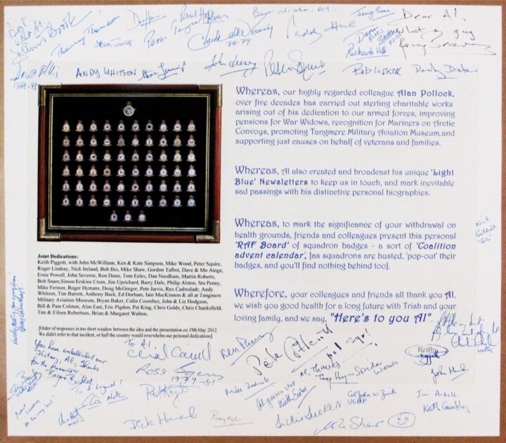 From Martin Beard: Derek was on IV from 1947 to 1950 and is still doing well at 98 years old! He would like to fill in the missing names from this Mosquito picture – can anybody help? Ed: These look like Mosquito FB VI, probably at Celle around 1949. From the Pegasus Club: A Memorial Service will be held on Thursday 5 October 2023 at 2pm at St Clement Danes Church, Strand, London WC2R 1DH. Dress: Serving personnel, Full Ceremonial Day Dress (No1 SD with medals), swords not required; retired military personnel may opt for same, or lounge suit with medals; all others lounge suit, ladies equivalent, medals may be worn. For the purpose of numbers, all those wishing to attend the Service are kindly requested to email: reply.memorialservice@gmail.com by 9 September 2023. Does anybody have a copy of the JP3 FRCs? Mike Walker, who runs pilotsnotes.com, is after a copy. Please scan/photo the FRCs and mail to mikeawalker (at) btconnect.com if you can help. Very sad to hear that Glenn passed away at the beginning of November after a long battle with cancer. Commiserations to Carol and the family. Apologies for the lateness of this news – I am currently in Cape Verde with extremely poor internet access.