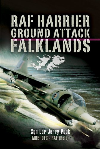 During the Falklands war Jerry Pook, a pilot in No. 1(F) Squadron RAF, flew air interdiction, armed recce, close-air-support and airfield attack as well as pure photo-recce missions. Most weapons were delivered from extreme low-level attacks because of the lack of navigation aids and in the absence of Smart weapons. The only way he could achieve results was to get low down and close-in to the targets and, if necessary, carry out re-attacks to destroy high-value targets. Apart from brief carrier trials carried out many years previously there had been no RAF Harriers deployed at sea. The RAF pilots were treated with ill-disguised contempt by their naval masters, their professional opinions ignored in spite of the fact that the RN knew next to nothing about ground-attack and recce operations. Very soon after starting operations from the aircraft carrier HMS Hermes the squadron realised that they were considered as more or less expendable ordnance. The Harriers lacked the most basic self-protection aids and were up against 10,000 well-armed troops who put up an impressive weight of fire whenever attacked.
