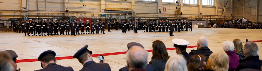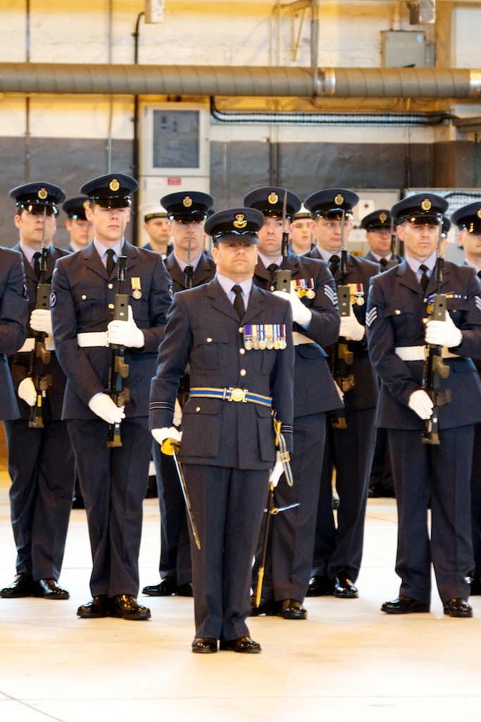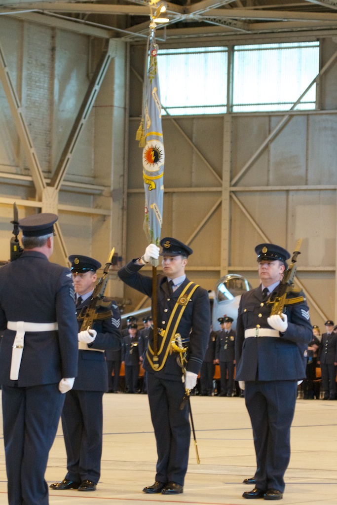 The parade itself went very well once everyone had negotiated their way past the guardroom. The Squadron had finished flying last Friday (with a nine-ship!) so it could concentrate on the parade. In the event winter returned so the parade took place in the Squadron hangar.