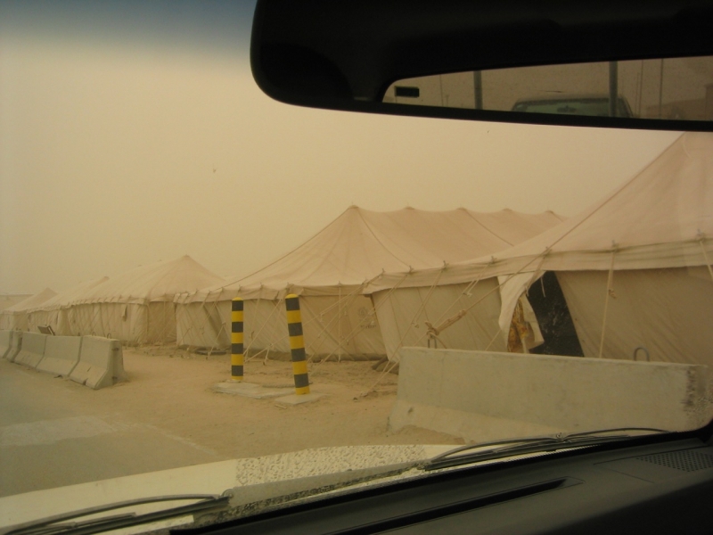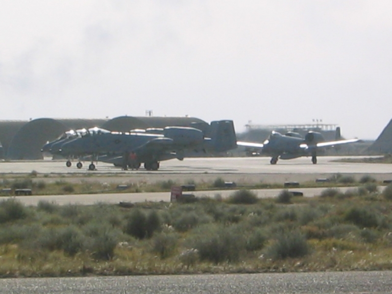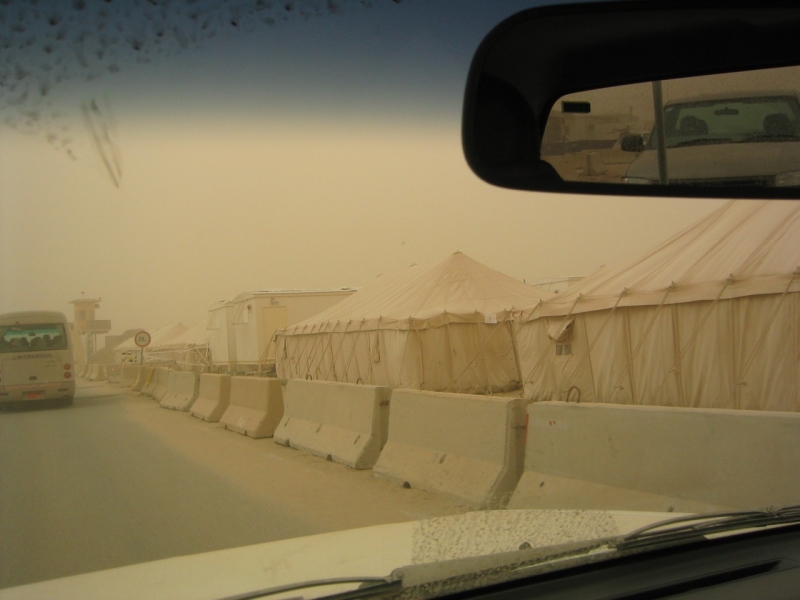 The skies, seen from an airbase in Kuwait, are darkened with smoke from the burning oil fields in Iraq March 23, 2003. POOL REUTERS/Russell Boyce