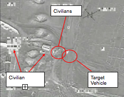 RAF Pilot’s skill saves innocent Afghan villagers from air strike The RAF has released previously classified video footage from a Harrier strike jet over Afghanistan showing the pilot ‘steering’ a laser-guided bomb in mid-flight away from a crowd of villagers who suddenly appear next to his target. The pilot had dropped the 500lb Paveway IV bomb from thousands of feet above Helmand Province, and was tracking the aiming point to follow a moving car which contained a ‘high value’ Taliban leader. But with the bomb plunging towards the ground and set to hit the car in less than 20 seconds, the pilot watched in horror as his thermal-imaging targeting screen showed the vehicle driving into a village and stopping next to a cluster of local civilians – who show up clearly as small white ‘hot’ shapes – seemingly to ask directions. The previously unreleased footage shows a bomb dropped from the aircraft heading for a Taliban commander in a vehicle which stops next to a civilian compound – the civilians can be seen to the left of the Harrier’s sights. ? The Harrier pilot, serving with IV(AC) Squadron, held a hurried conversation with ground controllers and took the split-second decision to break off the attack. With just moments to go before the bomb’s impact it was too late to disarm the warhead, but he successfully shifted the laser aiming point – which guides the bomb – away into a nearby field, just far enough away to save the lives of the civilians. They never knew what a narrow escape they had had, as the massive explosion rocked the village, but left them all alive. The Paveway IV uses a special seeker in its nose cone to steer itself towards the spot of laser energy on the ground, which is aimed by the pilot thousands of feet overhead. In this recent attack, the pilot showed immense skill, because shifting the aim point too fast can cause the falling bomb to break contact with the laser spot and lose all guidance. But moving the aim point too slowly would have meant the bomb exploding within lethal range of the crowd of civilians. The quick-thinking RAF officer is seen to move the bomb into a safe area of desert away from the civilian compound and its inhabitants. The pilot, who has asked to remain anonymous, said: ‘One task for fast jet pilots in Afghanistan is to conduct targeted strike operations against confirmed Taliban commanders. In this instance I found and tracked the target and had deployed my weapon. However, as it was flying to the target I saw the vehicle stop amongst civilians. ‘Every pilot dreads the prospect of inadvertently causing harm to any innocent civilian – so I knew I had to act immediately. The Paveway IV smart bomb is amazingly accurate and incredibly flexible.’ The Harrier’s bomb is seen exploding in a safe area of desert – the quick-thinking and skill of the RAF pilot managed to avoid killing several innocent Afghan civilians ‘I can control it whilst it is still in flight – so I used my onboard laser to guide the bomb into a safe area of open desert. It’s a shame I couldn’t prosecute the target as we had planned, but it was much better to let him go free this time than risk killing innocent civilians. In any case, this Taliban commander didn’t get away for long – we continued to track him and he was successfully attacked a couple of days later when the moment was right.’ The Paveway IV, the latest addition to the RAF’s arsenal of increasingly-sophisticated precision bombs, can be guided by a combination of GPS satellite signals and laser targeting. The pilot can pre-programme target locations before take-off, or else upload targeting data during the sortie or guide the bomb himself using the laser pod. Civilian deaths from coalition airstrikes have become a fiercely controversial issue in Afghanistan, where thousands of ordinary members of the public are caught up in the fighting each year, and killed or maimed. The allies insist they are often wrongly blamed for deaths caused by Taliban weapons, but the RAF remains anxious to show that it goes to great lengths to stop its bombs and rockets from killing civilians. Wing Commander Harv Smyth, DFC, Officer Commanding IV Squadron, said: ‘This shows there is more to being a pilot than just flying the aircraft and dropping bombs. ‘It is all about having a range of options and making the right decision at the right time’. ?? The pictures above show a Paveway IV laser guided bomb beneath a Harrier GR9 from IV Squadron, RAF Cottesmore whilst in Helmand, Afghanistan.
